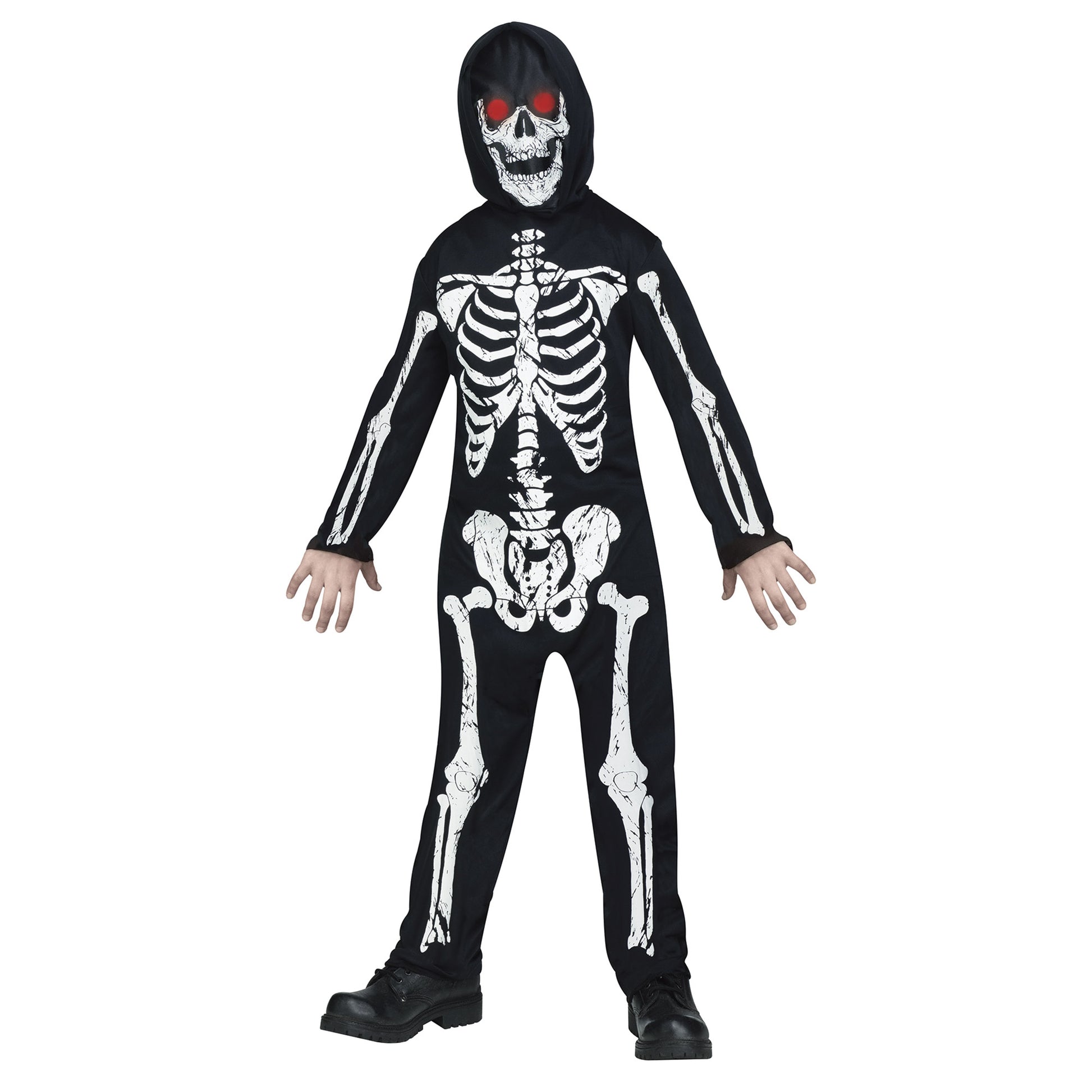 ¡Haz que tu pequeño destaque en Halloween con este espeluznante disfraz de esqueleto con ojos que se iluminan! El conjunto incluye jumpsuit y máscara con capucha, con mecanismo de ojos LED que parpadean y cambian de color para un efecto increíble.