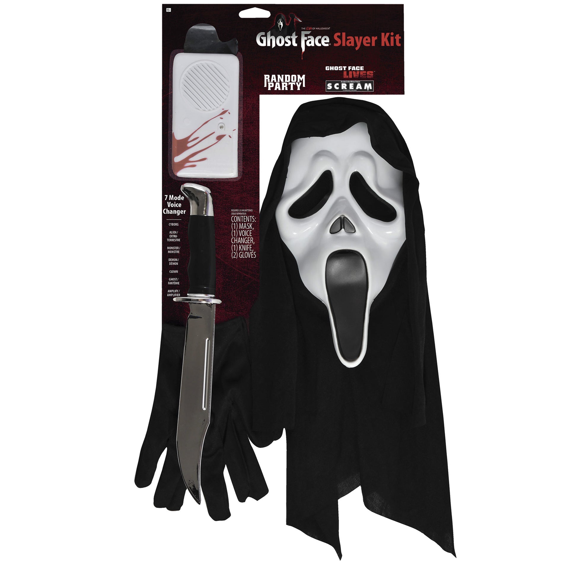 ¡Prepárate para sembrar el miedo con el Kit Ghost Face® Slayer! Este conjunto esencial te equipa con todo lo necesario para convertirte en el infame villano de las películas de terror. La máscara con capucha de PVC suave, los guantes y el cuchillo Bowie cromado completan el disfraz. Además, el cambiador de voz añade un toque espeluznante, dándote el poder de sonar tan aterrador como Ghost Face®. Perfecto para Halloween o cualquier evento temático, este kit es la opción definitiva para destacar y aterrorizar en cualquier lugar. ¡No te pierdas la oportunidad de ser el asesino más icónico de la temporada!