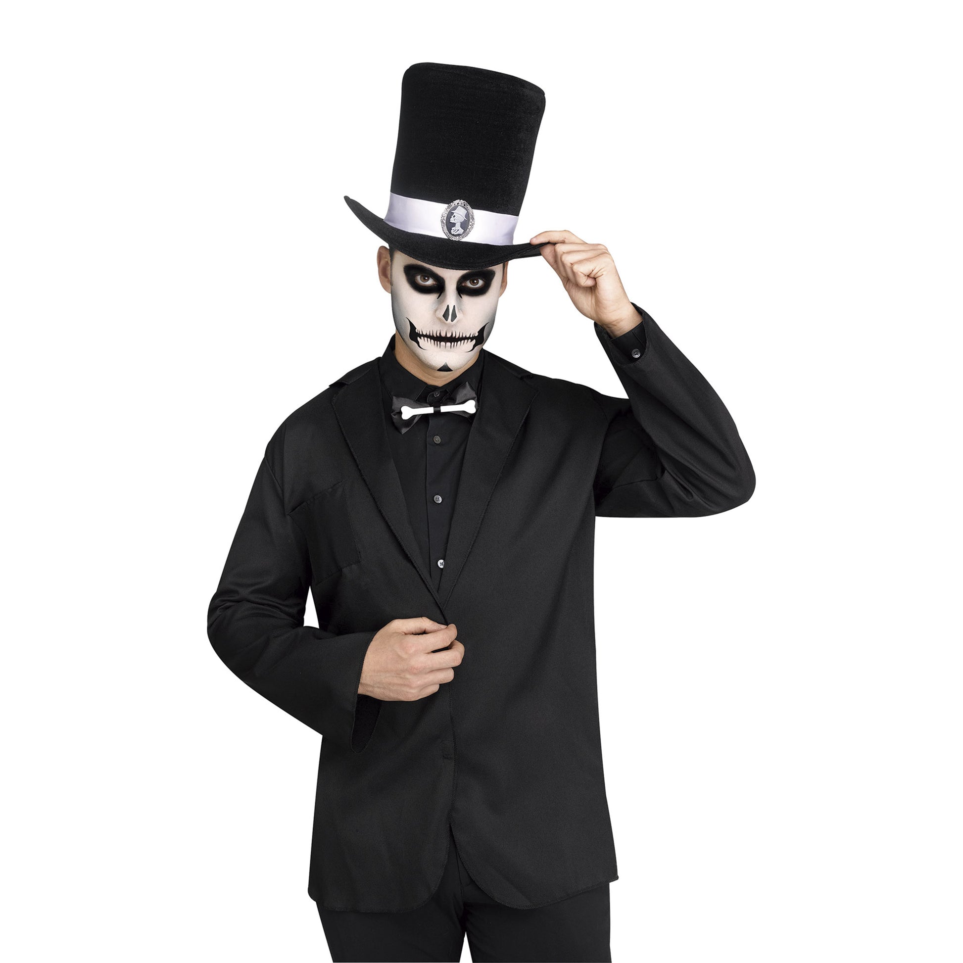 Incluye Sombrero plegable, Tatuaje para la boca y moño.