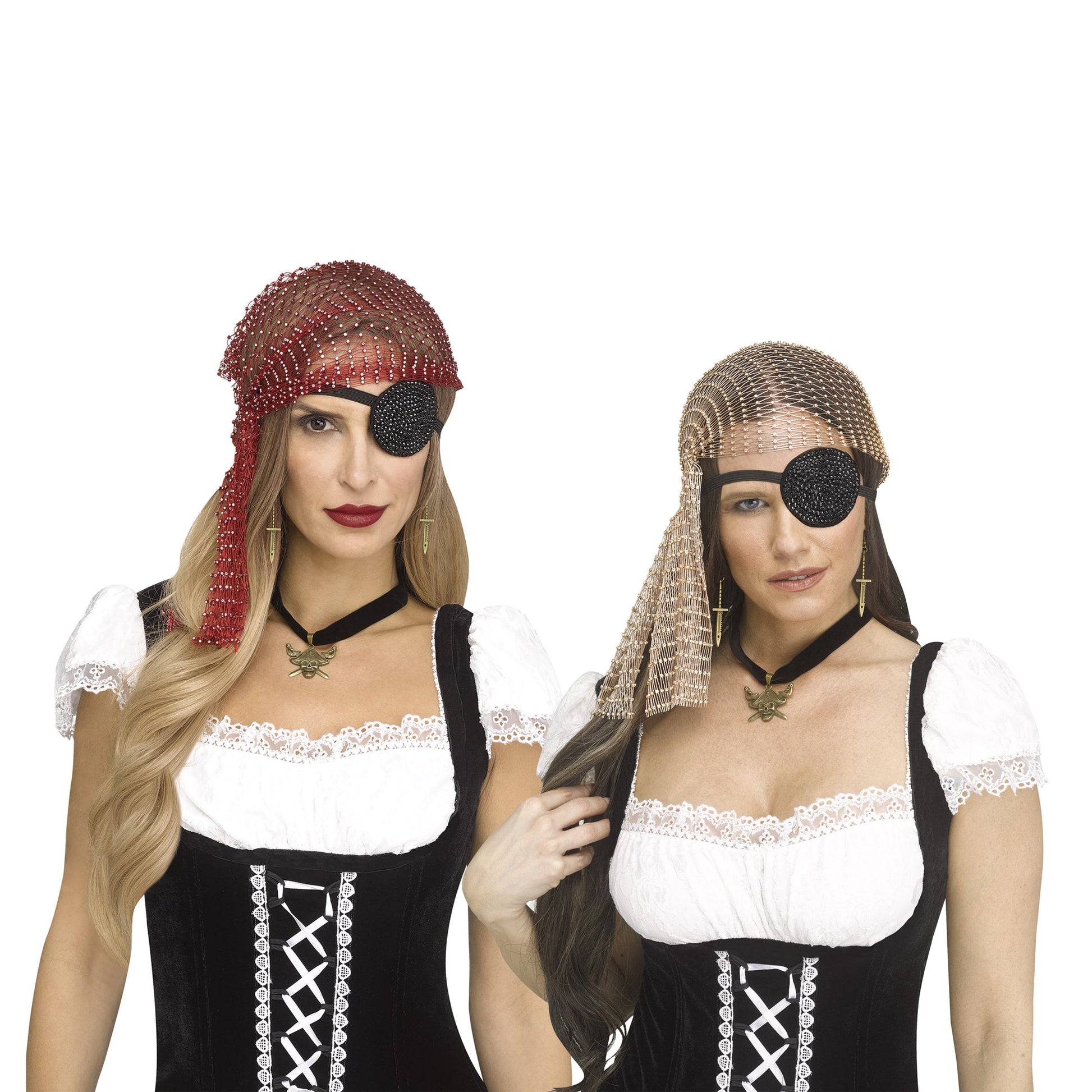 Transforma tu look en un instante con este kit de pirata con brillo, disponible en dos colores: tinto y dorado. Incluye todo lo que necesitas para convertirte en un auténtico bucanero: un pañuelo para la cabeza, un parche para el ojo, un choker y un arete, todos diseñados para aportar un toque de estilo y aventura a tu disfraz. Perfecto para fiestas de disfraces, eventos temáticos o Halloween, este kit hará que te destaques en cualquier ocasión. ¡Prepárate para zarpar y conquistar los mares con este emocionante conjunto!