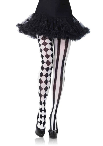 Si amas los patrones divertidos, te encantarán las Aura Harlequin Women’s Tights. Estas pantimedias festivas tienen un patrón a cuadros en una pierna y rayas en la otra, creando un look adorablemente desigual y llamativo. Perfectas para un disfraz de Halloween o simplemente para divertirte con estilo.