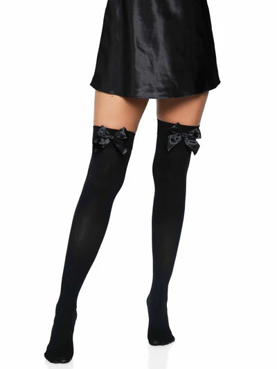 Deja que tus piernas hablen por ti con las Kay Opaque Thigh Highs. Estas medias hasta el muslo cuentan con un ajuste favorecedor y ceñido, rematadas con un hermoso lazo de satén, creando un look inolvidable. Perfectas para combinar con tu lencería favorita.