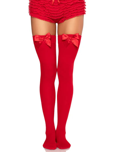 Medias lisas rojas con moño negro