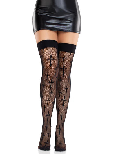 Las medias de red más únicas son las Worship Me Fishnet Tights. Con un delicado patrón de cruces sobre la clásica red, logran transformar un símbolo sutil en un look atrevido y lleno de personalidad. Son el complemento perfecto para destacar en cualquier ocasión.