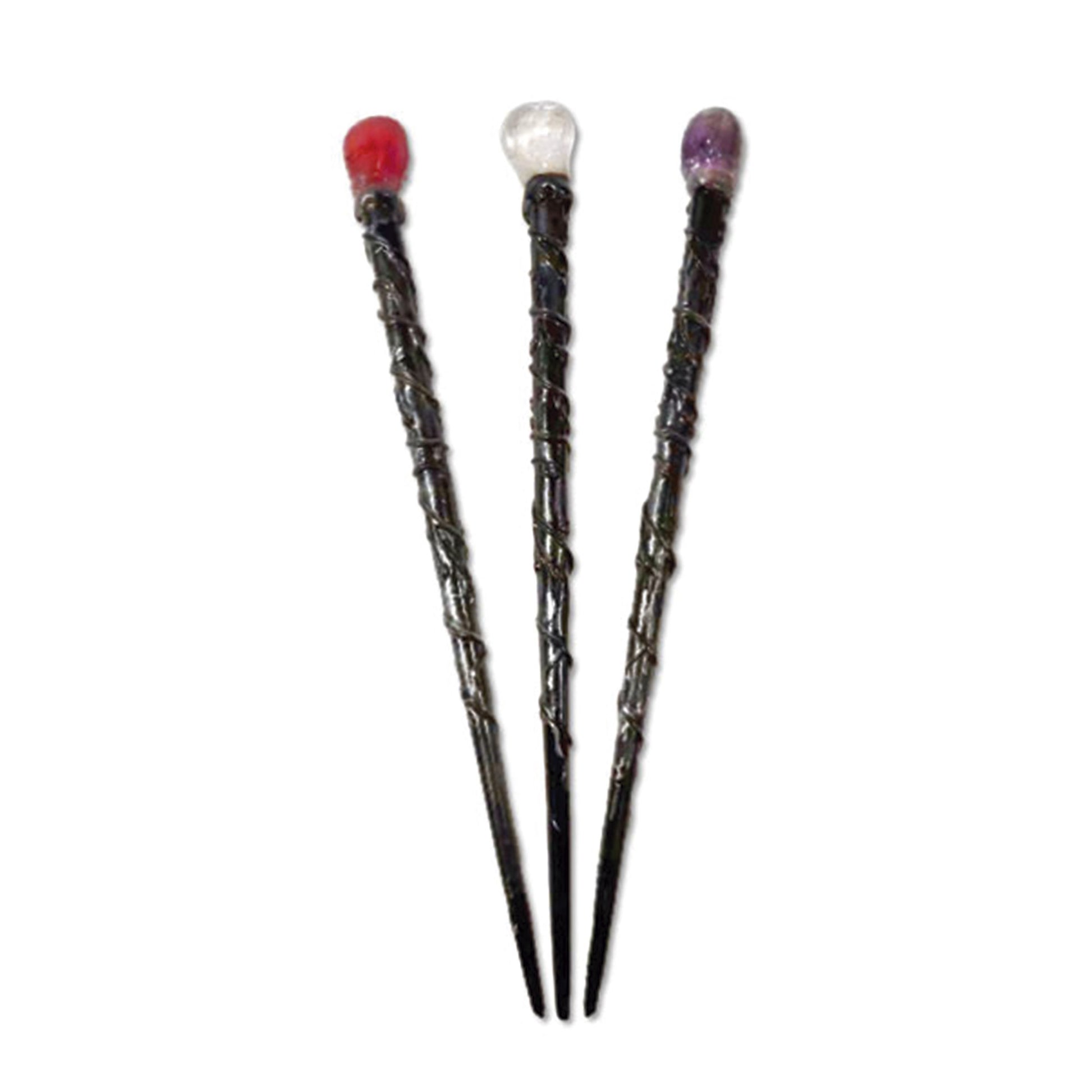¡Abracadabra! Dale un toque mágico a tu disfraz con esta fabulosa varita mágica, que cuenta con una punta de cristal antiguo para crear hechizos especiales. Disponible en tres colores de gemas artificiales: rubí, cristal transparente y amatista, esta varita es el accesorio perfecto para brujas, hadas o cualquier personaje encantado. Ideal para fiestas de disfraces, Halloween o eventos temáticos, ¡deja que tu imaginación vuele y sorprende a todos con tu estilo mágico!